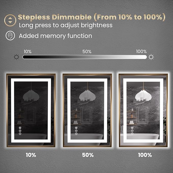 - [Double Bright Lights & Gold Frame]: With built-in LED strip light, Amorho LED bathroom mirror with front light and backlit both to show more bright; And the matte aluminum frame wrapped around make the mirror more delicate