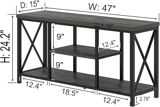- Modern 47 Inch TV Stand: Featuring a classic grey wood grain surface and X-shaped metal frame design on both sides, this grey TV stand with storage brings an industrial feel to living space, perfectly complementing your modern home decor