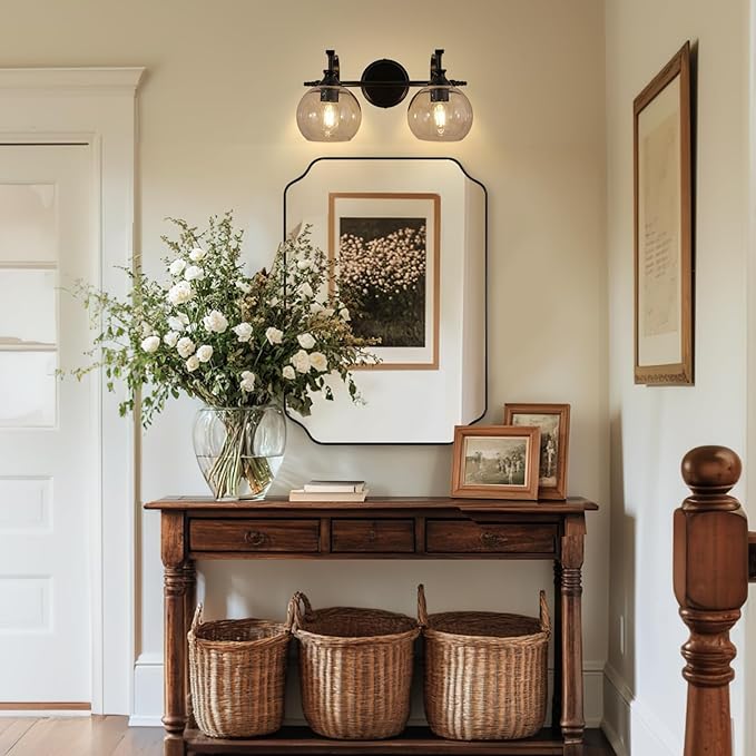 - Stylish Design: This farmhouse wall sconce features a beautiful clear globe glass shade, which is currently a popular style in wall light; The matte black finish adds a modern touch, while the minimalist design complements a variety of decor styles