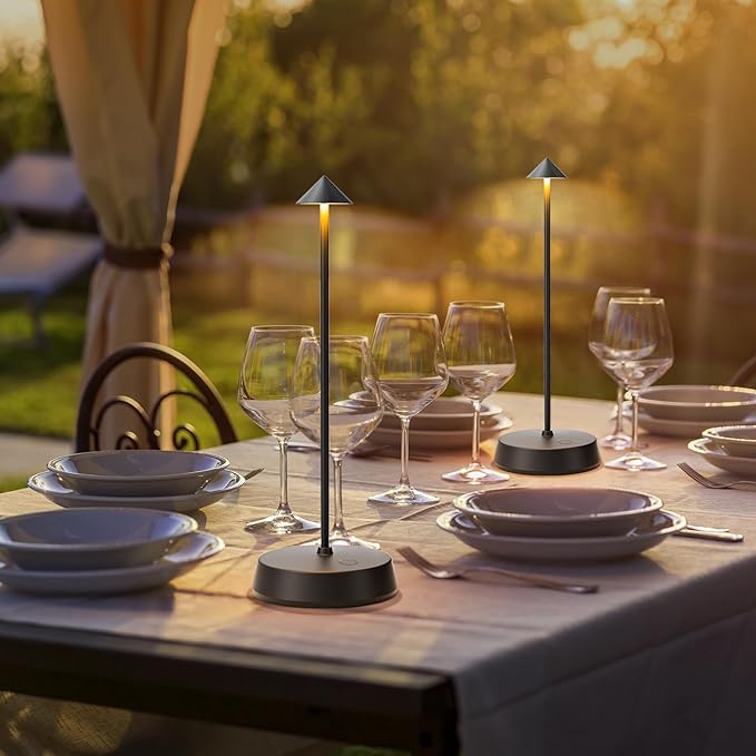 - 【Portable Cordless Lamp】:This simple design LED table lamp. It's lightweight construction allows for easy portability, making it perfect for use in various settings. Whether you're reading indoors or enjoying an evening outdoors, this lamp's water-resistant feature ensures it withstands the elements, while its rechargeable battery provides convenience without the hassle of cords.it transforms into an emergency light during power outages.