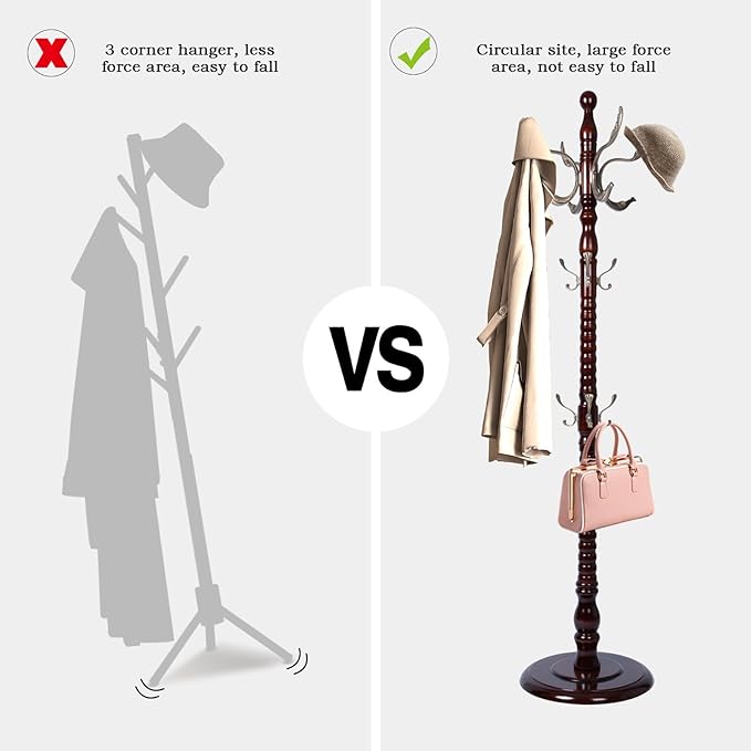 - 【Assembly Is a Cinch】Do you have trouble with complicated assembly?The wooden tree coat rack stand not have complicated installation, All you need to do is attach the pole onto the round base, then put the other details together. Even girls or old people can easily install this product. Can be assembled in under 10 minutes, helping keep your home a frustration-freestanding zone without unnecessary.