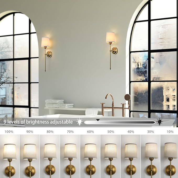 - Premium Material & Unique Design: The brass finish metal lampholder is classy and the shade gives it a modern shape and design while still have a classical style. Good quality materials and handmade crafts, make each one truly special. The indoor wall mounted fixture will be an art decoration for your modern or retro space