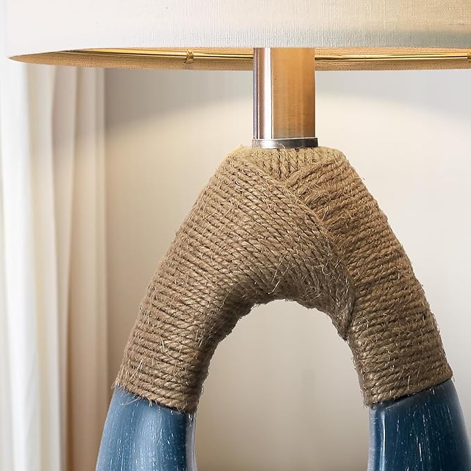 OYEARS 19" Boho Bedside Lamps Set of 2, Suitable for Small Spaces, Blue Table Lamps for Living Room & Coastal Farmhouse End Tables