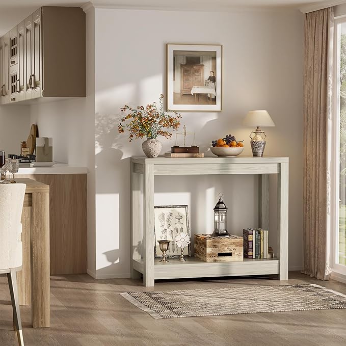 - Simple and Elegant—Besiost farmhouse console table with storage features simple construction, which is elegant and classic to add to the entryway space. It's suitable for your mid-century modern house