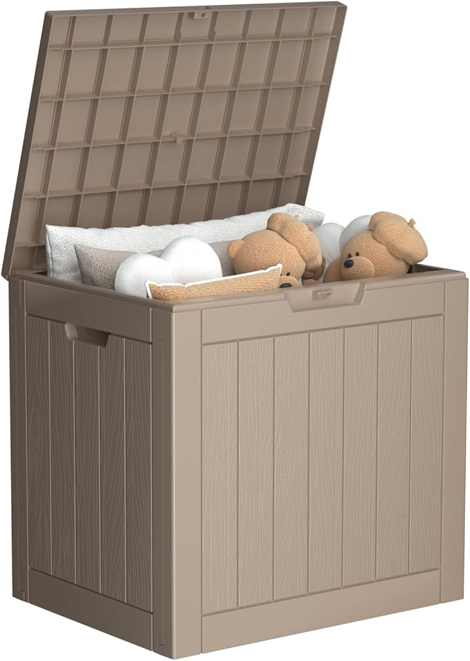 - FROM INDOORS TO OUTDOORS: This terrace deck box is not just for outdoor use; it can also function as an indoor laundry storage chest. Whether storing outdoor cushions, garden tools, pool accessories, or sports equipment, it offers plenty of room. Additionally, it serves as a versatile side table, patio seat, storage bench, or footstool