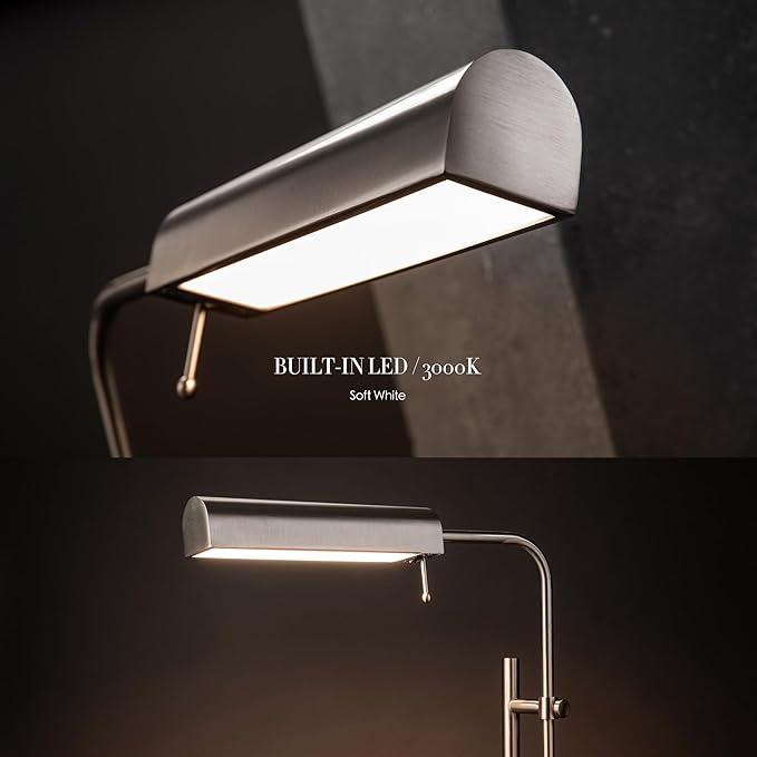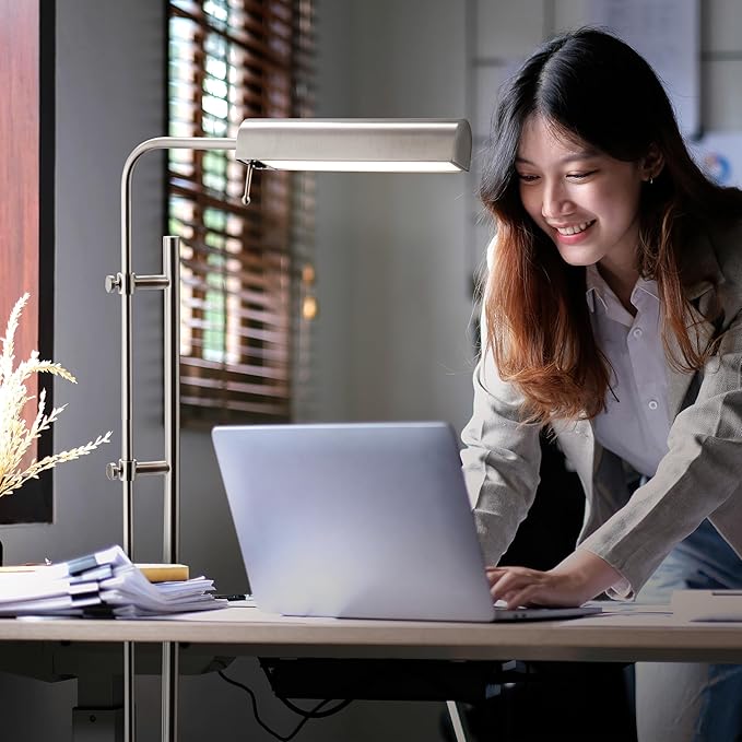 O'Bright Cedric Adjustable Pharmacy Floor Lamp - Industrial Design for Reading, Crafting, Work - 10W LED, Height 45-61 inches - Ideal for Living Room, Bedside, Office - Brushed Nickel