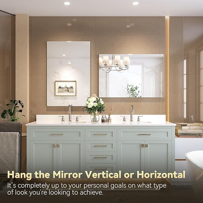 - Safety Tempered Mirror: Made from upgraded 4mm (1/6 inch) thickness tempered glass, this frameless bathroom mirror shatters into small, non-sharp particles, reducing injury risk—ideal for high-traffic areas like bathrooms and gyms
