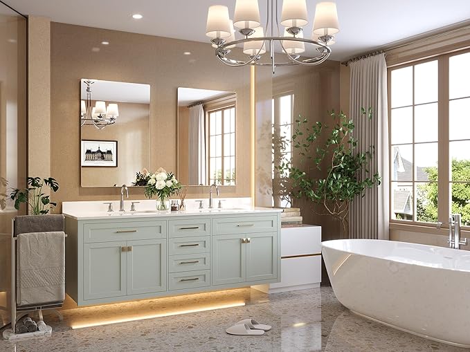 - Safety Tempered Mirror: Made from upgraded 4mm (1/6 inch) thickness tempered glass, this frameless bathroom mirror shatters into small, non-sharp particles, reducing injury risk—ideal for high-traffic areas like bathrooms and gyms