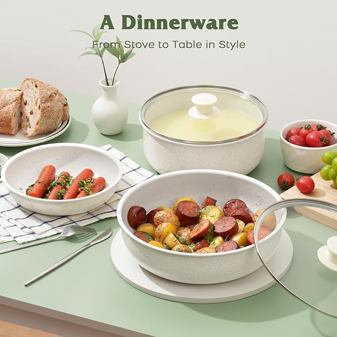 - Premium Granite Non-Stick Coating: Superior granite coating for smooth, ultra-non-stick cooking; food slides off effortlessly without sticking. Non-toxic and Non PFOS & PFOA,SGS Approved cookware sets allow you to cook healthy and safe