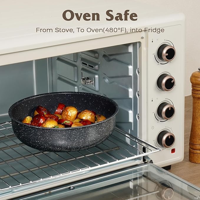 - Premium Granite Non-Stick Coating: Superior granite coating for smooth, ultra-non-stick cooking; food slides off effortlessly without sticking. Non-toxic and Non PFOS & PFOA,SGS Approved cookware sets allow you to cook healthy and safe
