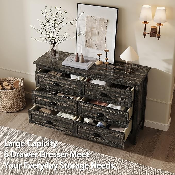 - Stable and Durable: Crafted with utmost attention to detail, our 6-drawer dresser is made from high-quality materials to ensure durability and longevity. The sturdy construction guarantees stability and strength, making it a reliable investment for your bedroom. Meanwhile, the anti-tipping device on the back of the dresser is designed to prevent accidents from happening, so that you can use it with more confidence