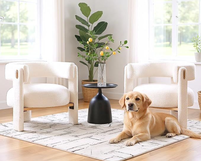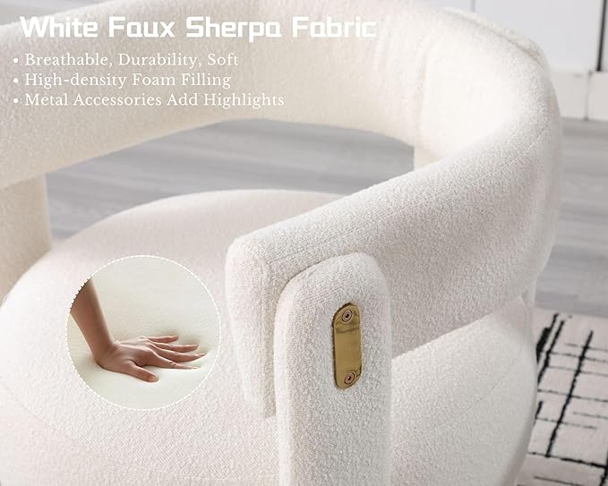 White Boucle Barrel Accent Chairs Set of 2, Comfy Upholstered Living Room Chairs Mid-Century Modern Reading Chair with Open Back Round Corner Armchairs, Side Sitting Lounge Chairs for Bedroom/Office
