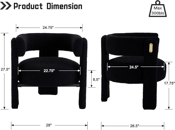 - Versatility: This comfortable round club chair perfectly blends modern and classic elements, making it a fashionable accessory for living rooms, bedrooms, guest rooms, hotels, cafes, offices, corridors, study rooms, or dressing table