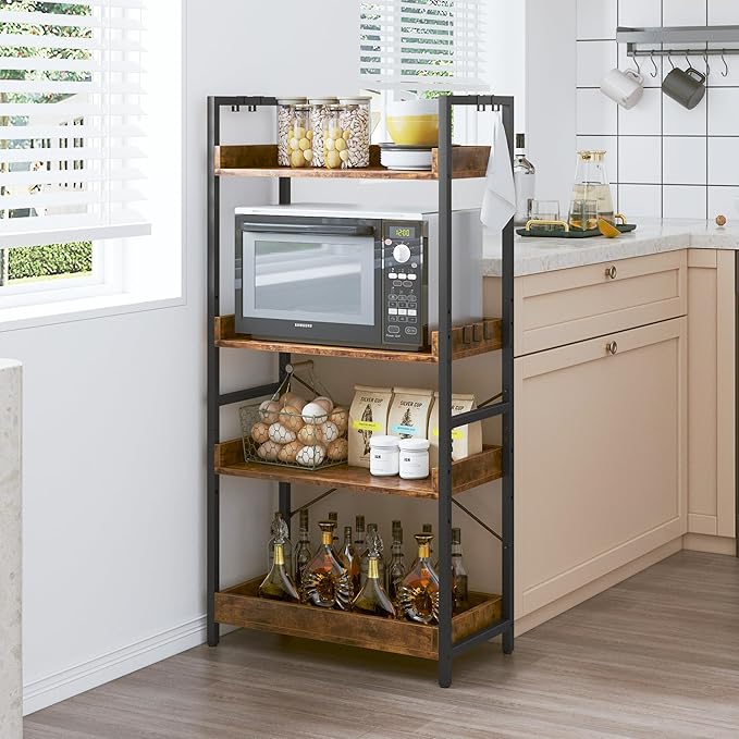 - 【8 Storage Hooks & Anti-Falling】The 5 tier bookshelf have different iron frame designs on each side, providing versatile storage options for products of various heights including books and ornaments. Additionally, 8 multipurpose hooks are included to hang headphones, toys, or other small decor.