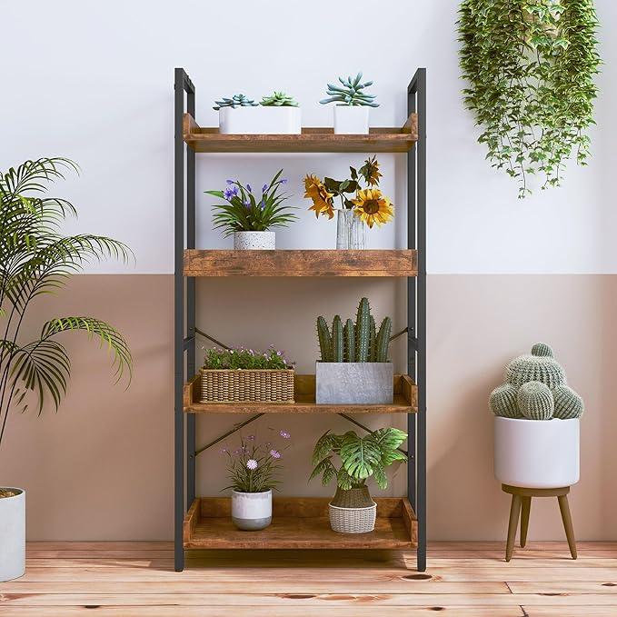 HCHQHS 4 Tier Bookshelf, Adjustable Industrial Bookcase, Vertical Tall Book Shelf, Wood and Black Metal Open Bookshelves for Home Office, Living Room, Bedroom