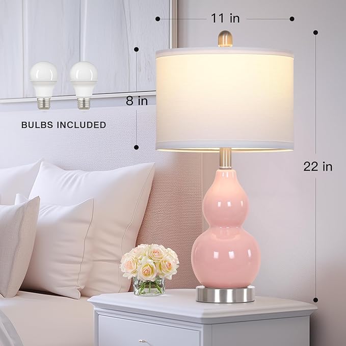 - 【Unique Ceramic Table Lamps】Unique gourd shape. This pink table lamp is simple and versatile, especially suitable as your working lamp, bedside lamp and reading lamp on the bedside nightstand, or as a decorative lamp on the living room, providing you with warm and soft lighting.