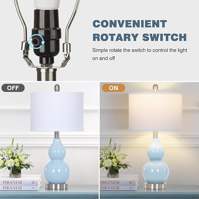 - 【Unique Ceramic Table Lamps】Unique gourd shape. This blue table lamp is simple and versatile, especially suitable as your working lamp, bedside lamp and reading lamp on the bedside nightstand, or as a decorative lamp on the living room, providing you with warm and soft lighting.