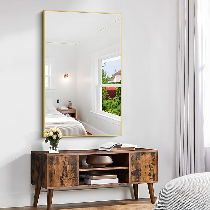 KOCUUY 30x48 Inch Large Gold Wall Mounted Mirror,Aluminum Framed Decorative Rectangular Bathroom Mirror for Wall Over Sink,Vanity Mirror for Bedroom Living Room Bathroom,Functional Oversized Mirror