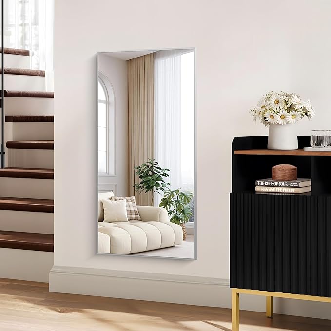 KOCUUY 24x48 Inch Large Silver Wall Mounted Mirror,Brushed Nickel Framed Rectangular Mirror for Wall Over Sink,Modern Design for Bedroom Living Room Bathroom,Functional Oversized Mirror