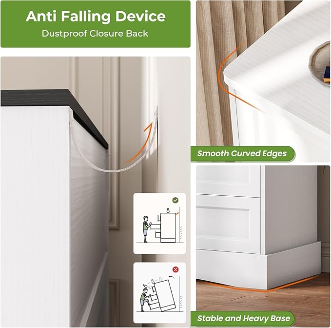 - 【Durable and Stable Tall Dresser】Dressers for bedroom is made of high-quality MDF engineered wood. Hard to both flex or crack. Drawers are equipped with high-quality metal slide rails and handles, which are easy to pull and save effort. The thickened back panel ensures the privacy of your storage while enhancing stability. Anti-tip kit included to keep your family safe.The stable base design made the dresser does not slide easily, provide great durability and stability. With support legs in the middle for added weight support.