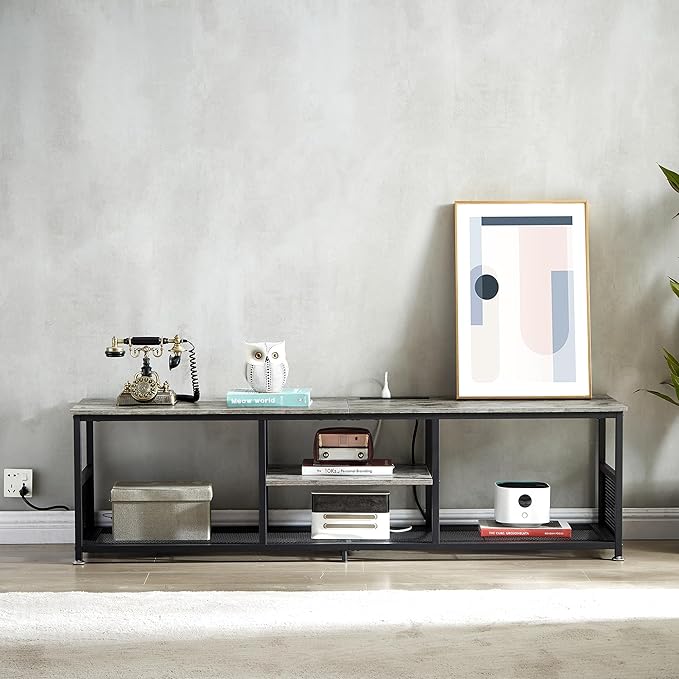 - 【 Sturdy and Stable TV Cabinet】 Vecelo TV stand constructed of quality particleboard shelves and industrial mesh shelves, top surface supports up to 200 lbs. and open shelves weight capacity is 65 lbs. The adjustable foot pad ensures it is more stable on an unbalanced floor.