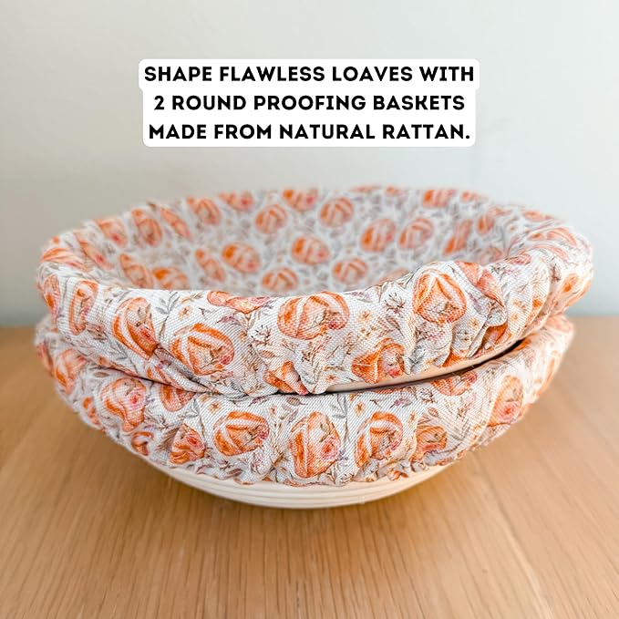 - 2 Natural Rattan Proofing Baskets: Shape flawless loaves with 2 round proofing baskets made from natural rattan.