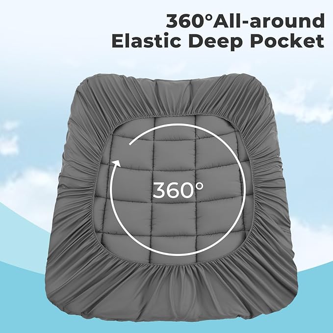 - Snug Fit with Deep Pocket Skirt: The 360° elastic deep-pocket skirt hugs your california king size mattress like a fitted sheet, accommodating beds up to 21 inches thick. Whether you're upgrading an old mattress or enhancing a new one, this mattress topper california king size bed stays securely in place.