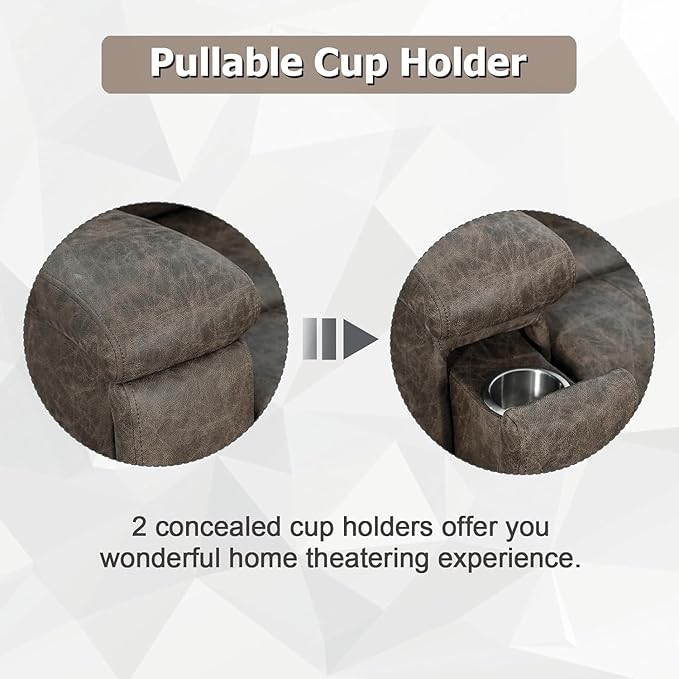 - Multi-Functions: Equipped with concealed cup holders, it is convenient to save your drink, enjoy wonderful home theatering experience. The backrest can be freely adjusted between 110 degrees and 145 degrees, which perfectly meets all daily needs of rest, entertainment or reading. Whether it is a busy workday or a leisure weekend, the comfortable recliner will accompany you.