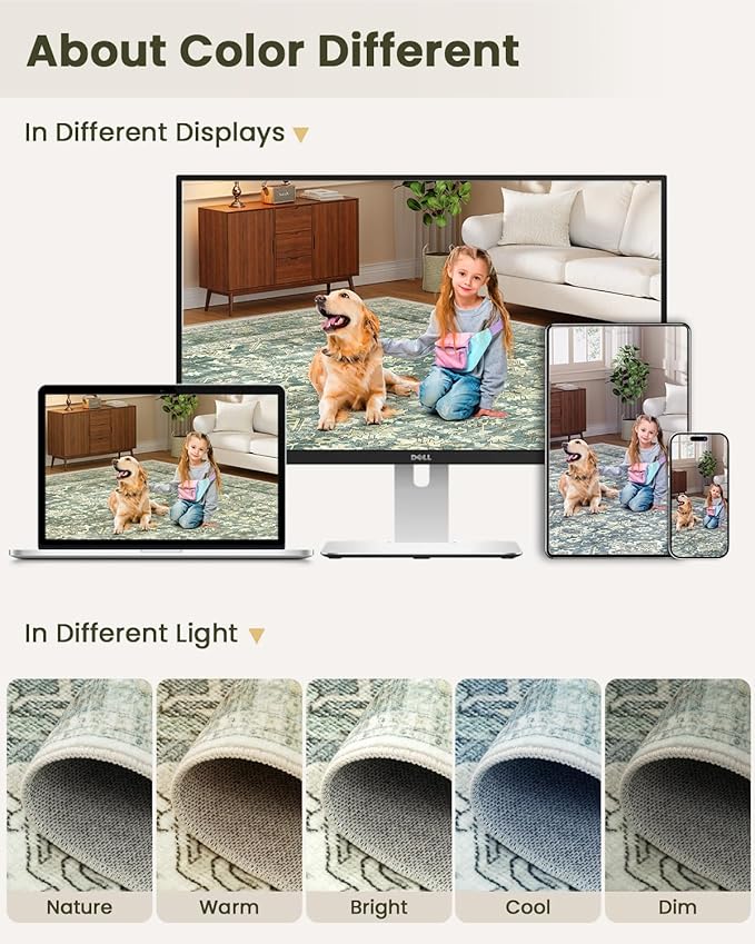 - 【Product Note】Machine washable area rugs may contain temporary creases upon arrival, allow time for creases to flatten and settle. Simply walking on the rug or placing heavy objects on it will help the creases disappear within a few days. Alternatively, gently spraying water on the creases and laying the rug face down will also help.