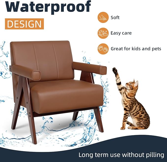 - 【Mid Century Modern Style】Our accent armchair has a mid-century modern design that can provide your home with a stylish atmosphere. This accent chair with walnut wood color arms comes with the design of the thick cushion,backrest with cable design, inverted V-shaped legs, and soft bag square arms, which is more aesthetic and luxury.It will always be the highlight in your room or office and its minimalist style will never be out of fashion