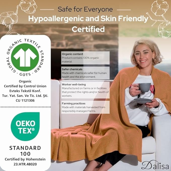 - [LUXURIOUS 100% ORGANIC TURKISH COTTON]: Experience the ultimate comfort with our GOTS certified organic cotton blanket, offering a premium, eco-friendly option for your home.