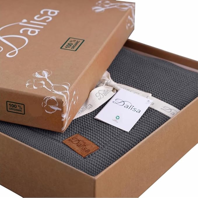 Dalisa 100% Organic Turkish Cotton Throw Blanket - GOTS Certified, Cozy - Perfect for Couch, Bed, and Home Decor - Boho Vintage Knit Alina (Dark Grey, 60x80)