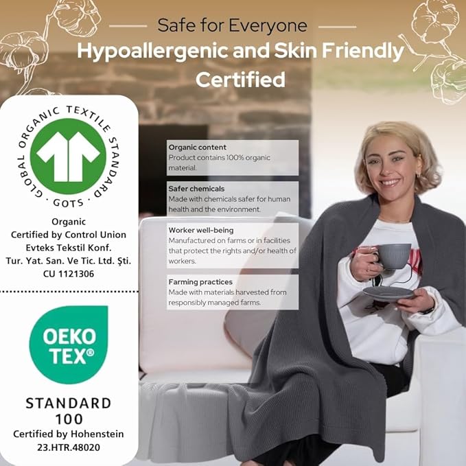 - [LUXURIOUS 100% ORGANIC TURKISH COTTON]: Experience the ultimate comfort with our GOTS certified organic cotton blanket, offering a premium, eco-friendly option for your home.