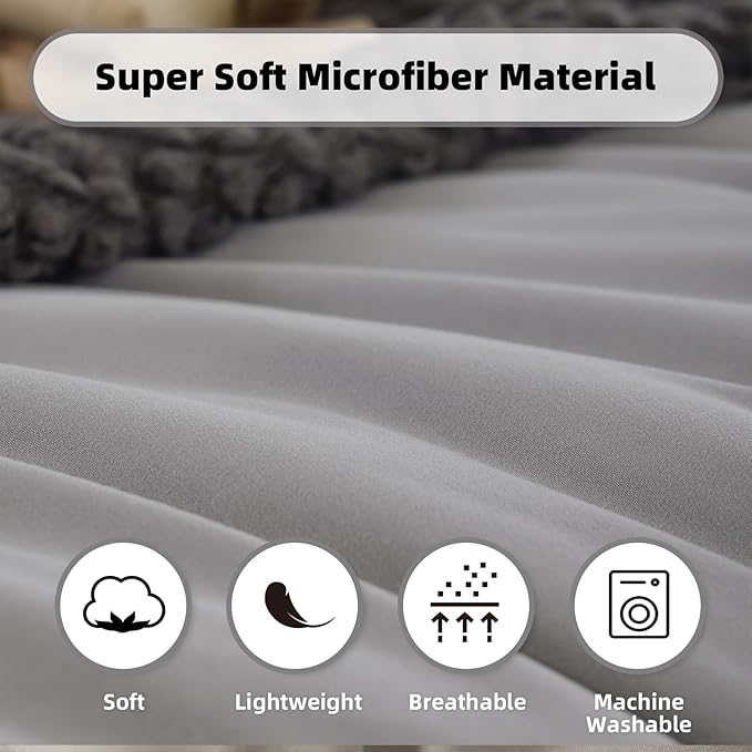 - 【Perfect for All Seasons】Our grey comforter set is lightweight and soft, adding a layer of warmth to your perfect sleep. The weight of the comforter makes it a great choice for all-year-round use. Our comforter can easily complement all room styles and is an ideal gift for family and friends.