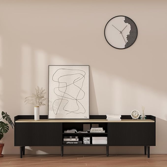 - Modern and Minimalist Design: The clean lines of this TV stand make it a perfect fit for contemporary or minimalist interiors; it features exquisite fluted sliding doors that add a touch of luxury