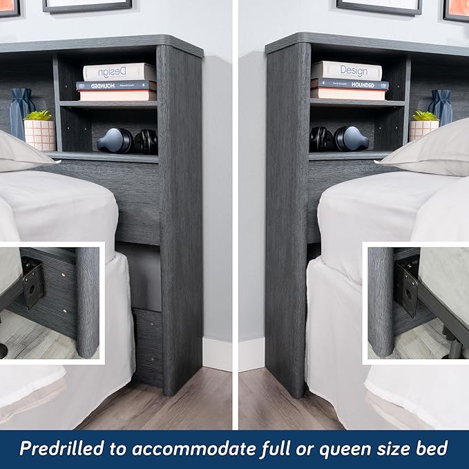 Sauder Dover Edge Full/Queen Bookcase Headboard, Denim Oak Finish