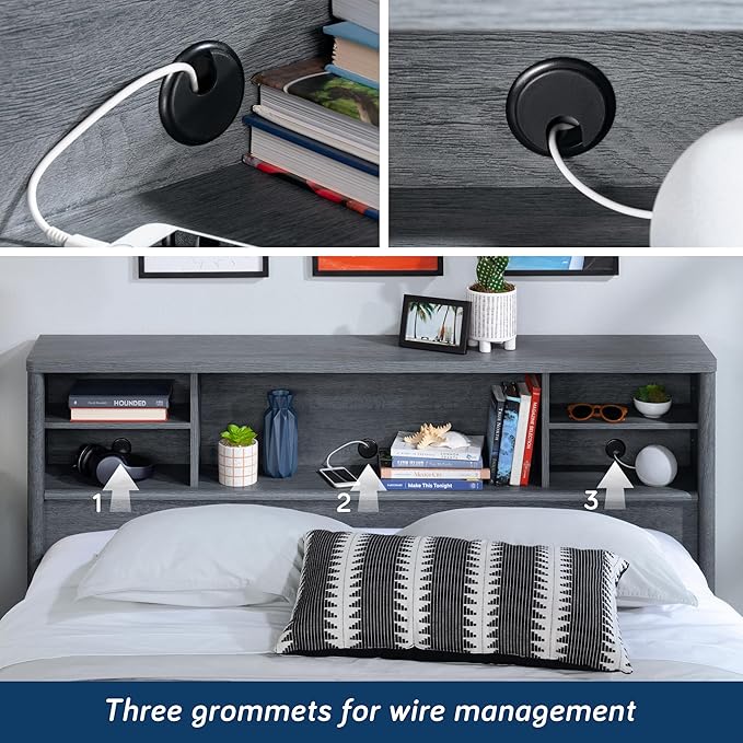 - MULTIFUNCTIONAL CUBBY STORAGE – Featuring convenient cubby storage, this headboard is ideal for stashing books, devices, or nighttime essentials, ensuring everything is within reach when you need it