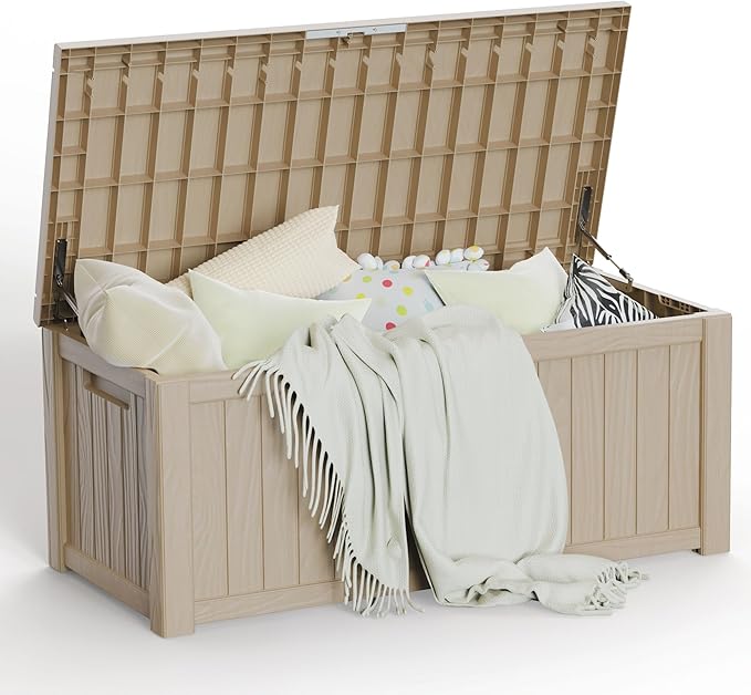 - ADAPTABLE TO VARIOUS SCENES: Whether used as an indoor laundry storage chest or an outdoor deck box container for items like outdoor cushions, garden tools and pool accessories, this patio storage box provides abundant space. It's also versatile as a side table, yard seat, storage bench, or footrest