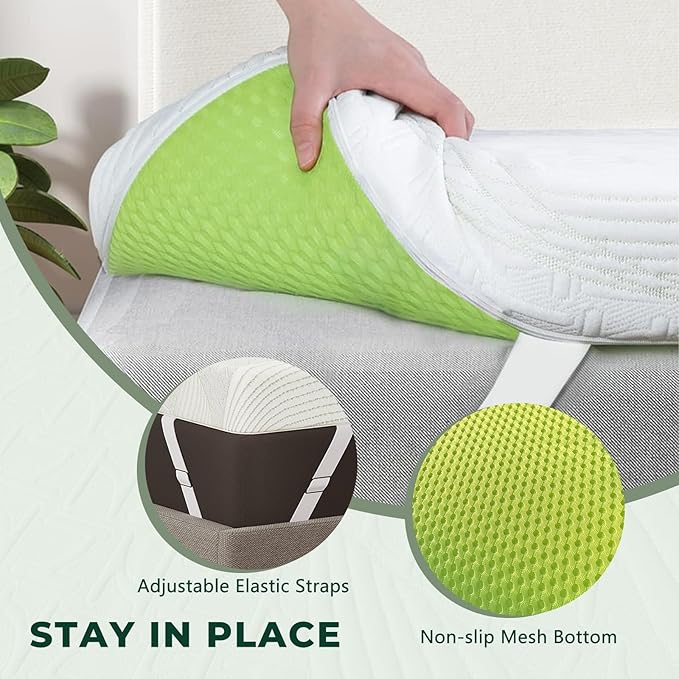 - 【ANTI-SLIP COVER】It has a grippy bottom and four elastic bands at each corner to fit perfectly with the mattress and stay it in place, eliminating the need to frequently adjust the position of the firm mattress topper.