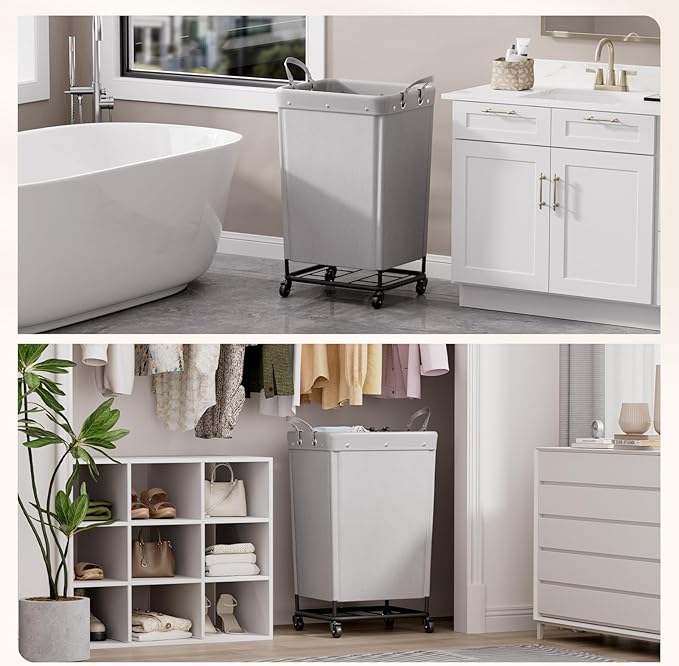 - Chic Design: With its minimalist style and neutral tones, rolling laundry basket combines ample capacity with an elegant appearance; perfect for any home or hotel décor, it effortlessly enhances your space's ambiance