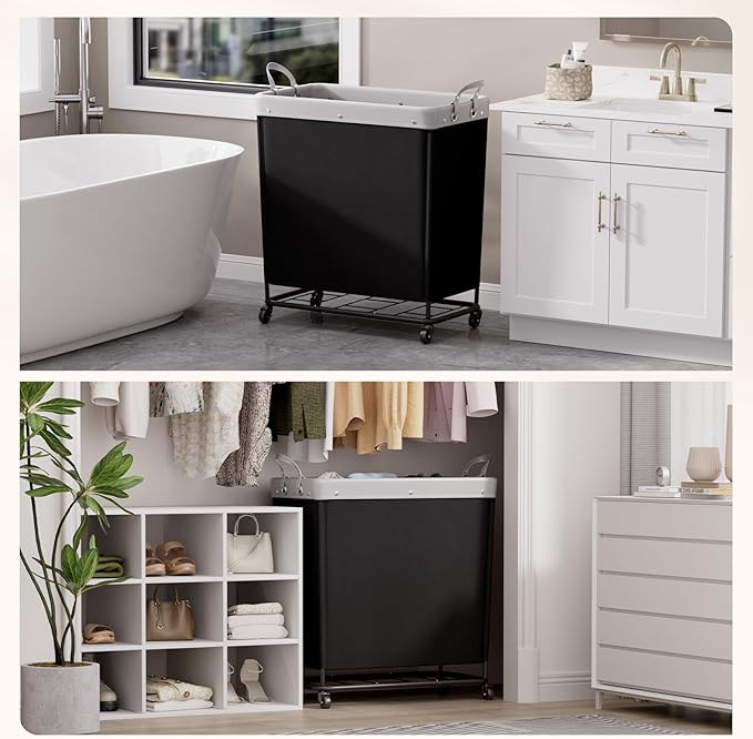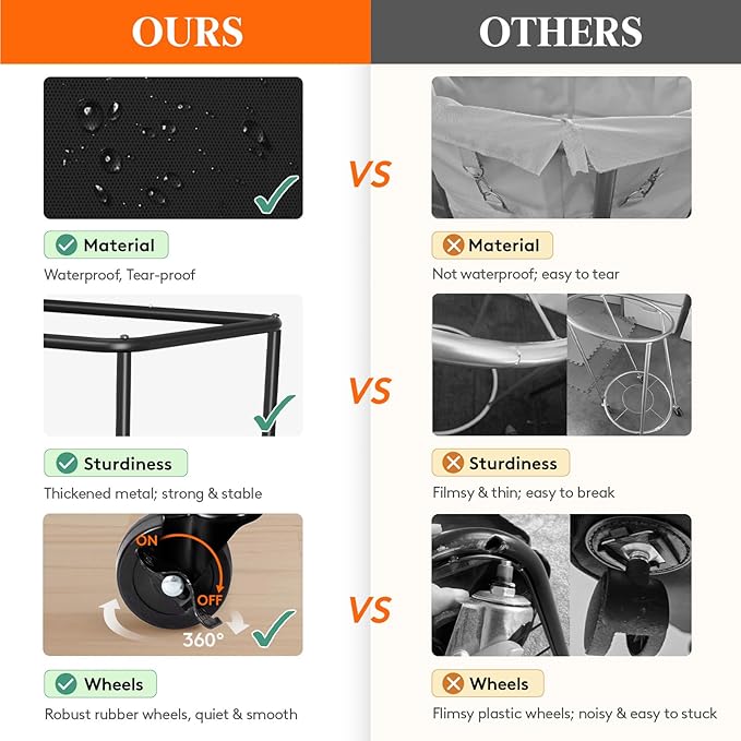 - Unmatched Durability: Crafted with a premium 0.6'' (1.6 cm) diameter steel tube frame, expertly treated for rust resistance; the laundry hamper is made from leather and tear-resistant Oxford fabric, featuring a waterproof lining inside; this laundry cart is built to last—your reliable companion for years to come