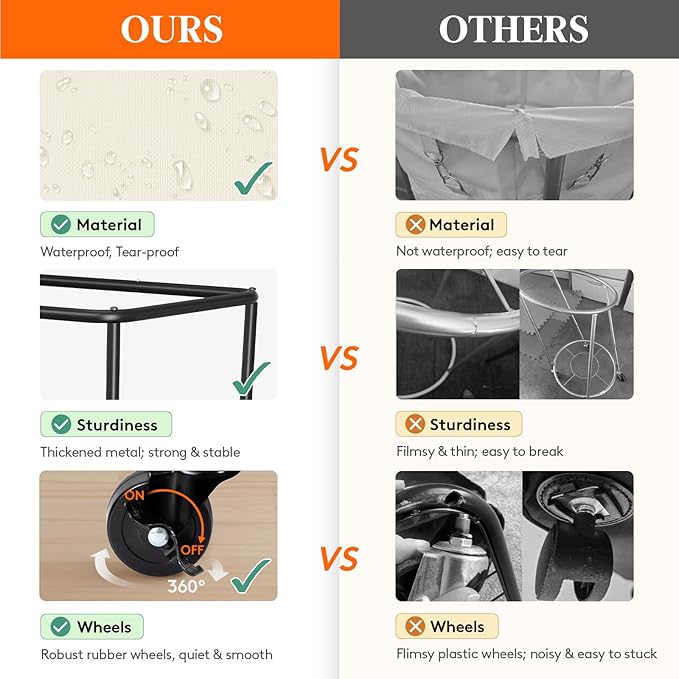 - Unmatched Durability: Crafted with a premium 0.6'' (1.6 cm) diameter steel tube frame, expertly treated for rust resistance; the laundry hamper is made from leather and tear-resistant Oxford fabric, featuring a waterproof lining inside; this laundry cart is built to last—your reliable companion for years to come