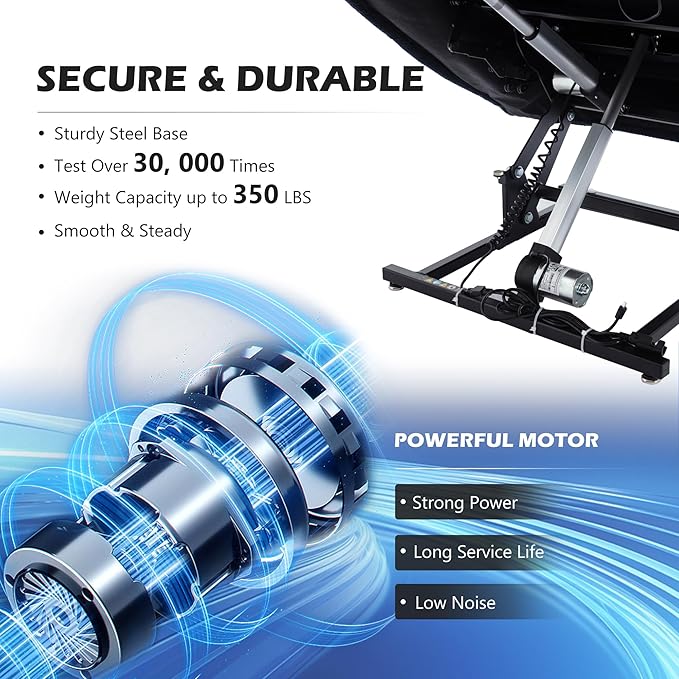 - Ultimate Comfort & Stable: Lean back into the overstuffed bouncy foam cushion to enjoy amazing comfort. Our lift recliner chair is made of sturdy wood frame and steel base, which is able to hold up to 350 pounds. The premium chenille fabric upholstery shows the luxury and grace.