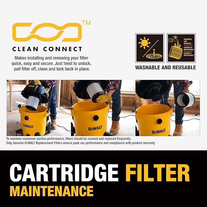 - 【Powerful Suction】Wet dry shop vac has a powerful 5 HP heavy duty motor delivering an airflow of 90 CFM with noise reduction technology. DEWALT shop vac provides the maximum suction you need for household cleaning, jobsite cleaning, and car detailing.