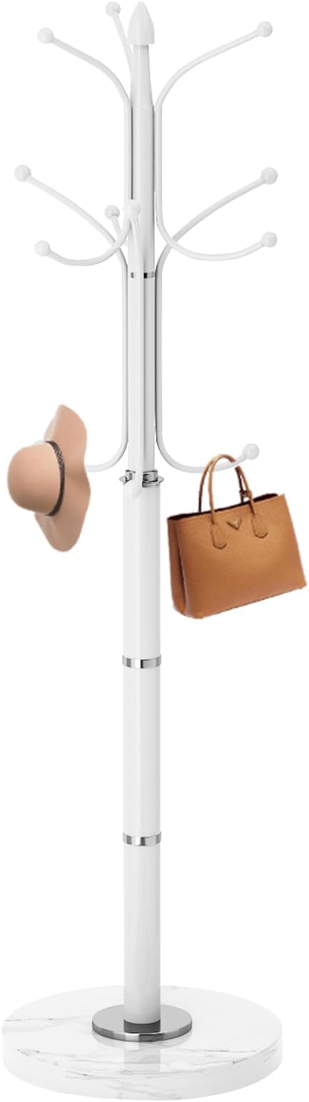 Modern Metal Coat Rack Stand, Coat Rack Freestanding with Natural Marble Base, Sturdy Heavy Duty Coat Racks with 12 Hooks, Coat Hall Tree Stand for Entryway, Office (12 HOOKS-White)