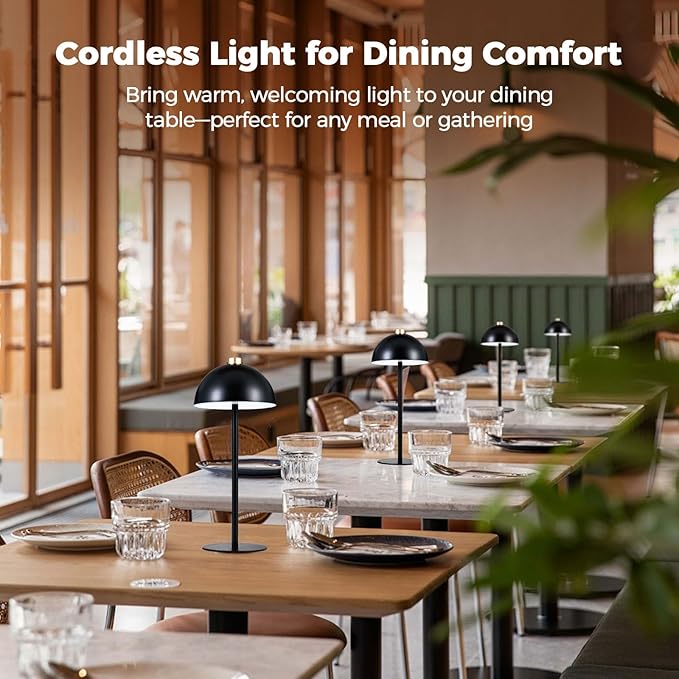 - Sleek Design, Built to Last: Crafted from premium aluminum with a modern, minimalist finish, this wireless table lamp combines style and durability. Its elegant design fits seamlessly into any decor, from upscale restaurants to chic hotel lobbies, making it a versatile addition to your home or workspace.