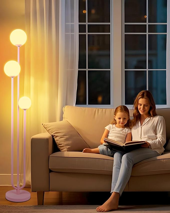 - Unique & Exquisite Modern Design ✨ This 63-inch pink floor lamp boasts a mid-century inspired silhouette with three spherical lights artfully arranged on a U-shaped triple metal frame. The elegant minimalist structure blends seamlessly with contemporary, vintage, or industrial decor, adding a touch of sophistication to living rooms, bedrooms, or offices.