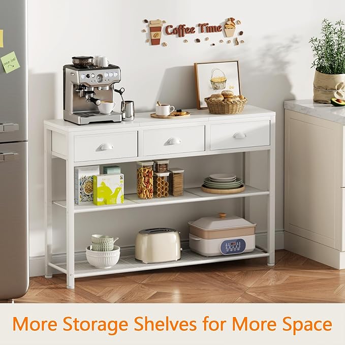 - Upgraded Fabric Drawers: The console table for entryway features easy-pull arch handles and 3 storage drawers made of high quality non-woven fabric that is lightweight, breathable, dustproof and provides ample storage space to keep your essentials organized and within reach.