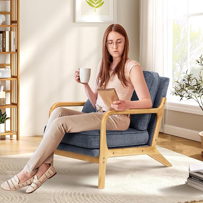 - 【Sturdy Solid Wood Frame 】:Crafted with a solid wood frame, this chair offers impressive stability and durability, supporting up to 275 pounds .The smooth, polished finish on the wood frame enhances both durability and aesthetic appeal, adding a refined touch to your living room or reading book.