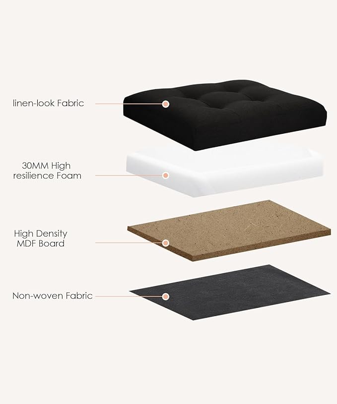 - Exquisite and sturdy: The storage ottoman bench is made of thick E1 standard MDF construction, sturdy and sturdy. The top cover and the exterior are made of high resilience thick foam soft and linen fabric which makes the foot stool both beautiful and practical as well as soft and comfortable